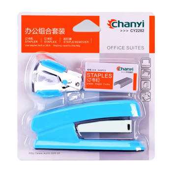 创易(chanyi)订书机起钉器24/6订书针常用中小型装订机办公财务装订用品组合套装 {蓝色/绿色}颜色随机,三合一组合套装 自营