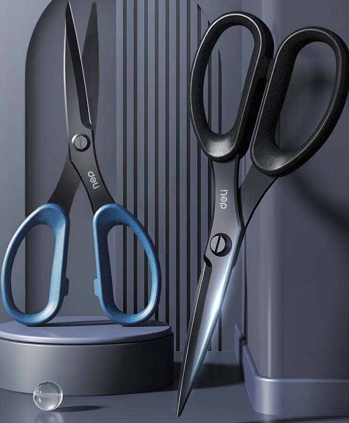 得力(deli)175mm人机造型剪刀 黑色防锈处理 办公用品 黑77790